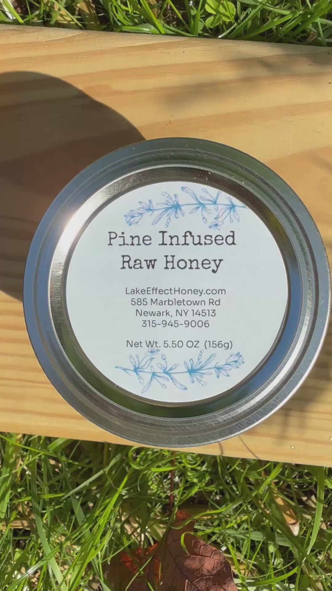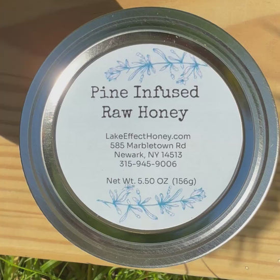 A glass container of 5 ounces of unfiltered spring honey from Upstate New York that has been slowly infused with Eastern White Pine needles and inner bark. The delicate taste and smell of pine in this honey reminds me of a walk in the forest. No artificial ingredients. Filtered through a coarse strainer only. Honey ships to USA only.