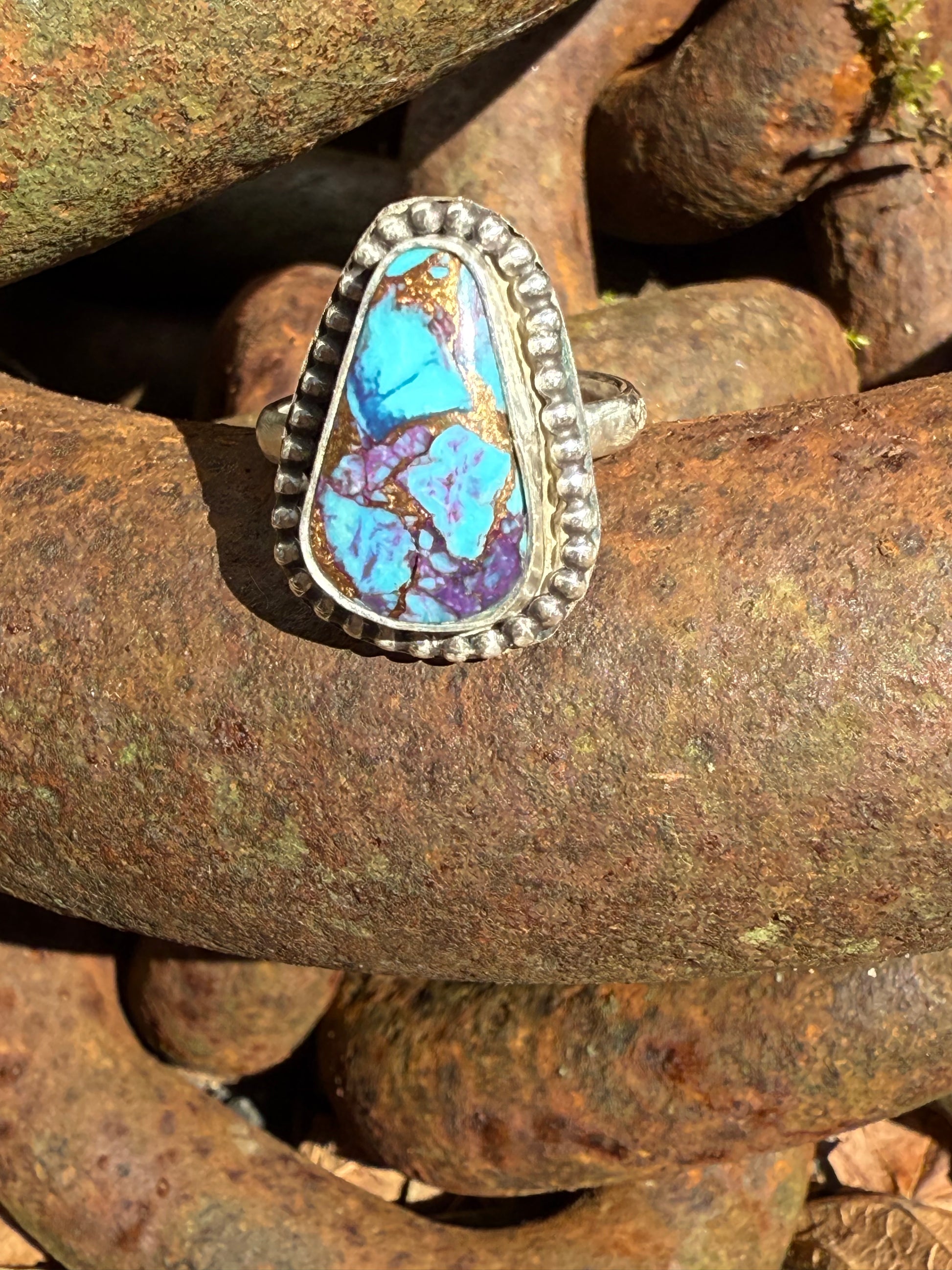This ring features a beautiful Purple Mojave stone with bright, fiery colors!